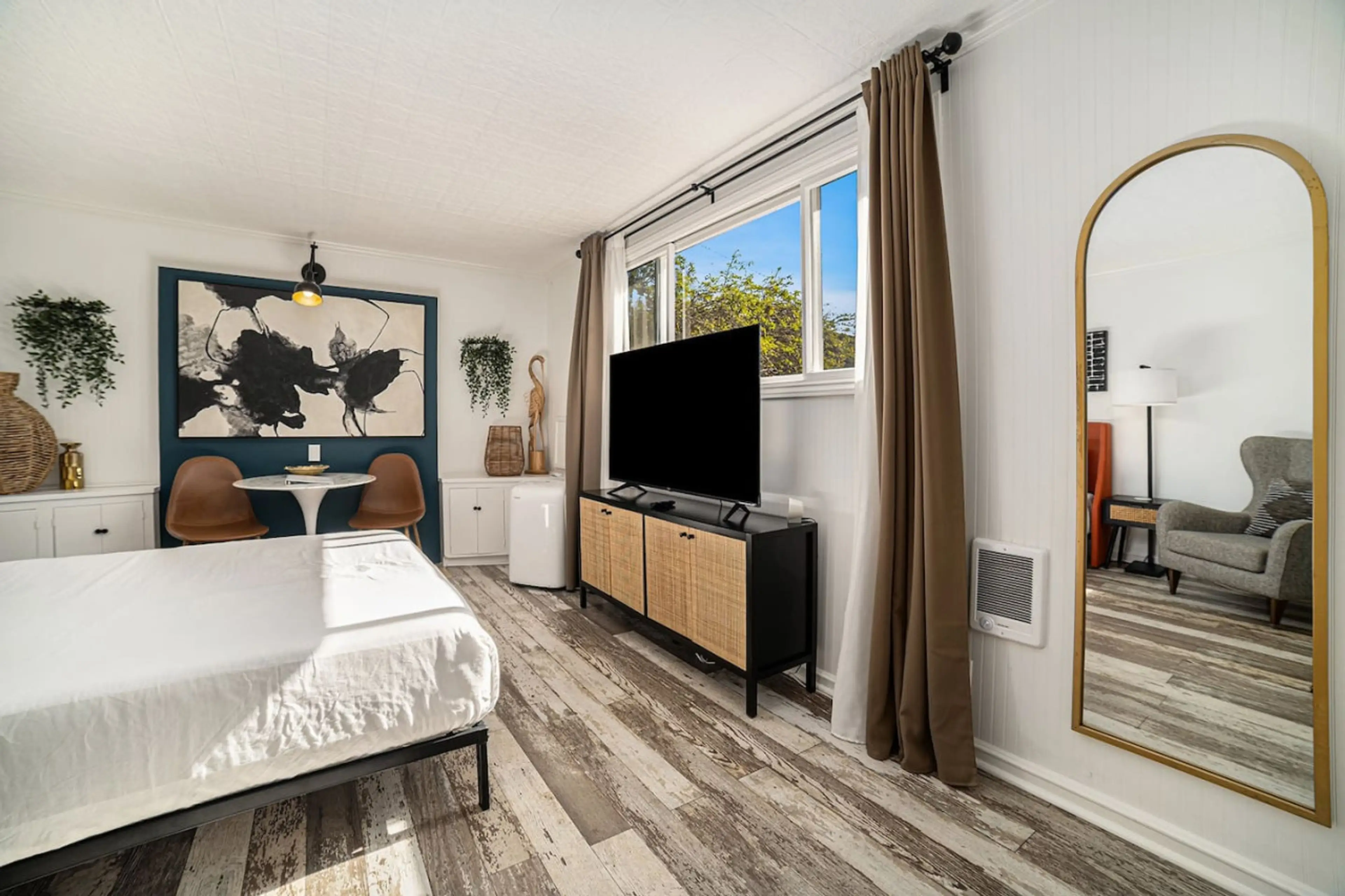 Discover tranquility in this charming Bonita studio, featuring a private covered patio illuminated by string lights—ideal for evening relaxation. Inside, enjoy a cozy queen bed, smart TV, and a functional kitchenette equipped with a stainless mini-fridge, microwave, hot plate, toaster, and Keurig co...